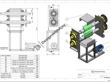 Tree Branch Cutter Machine 3d STEP File and DXF Prototype Design